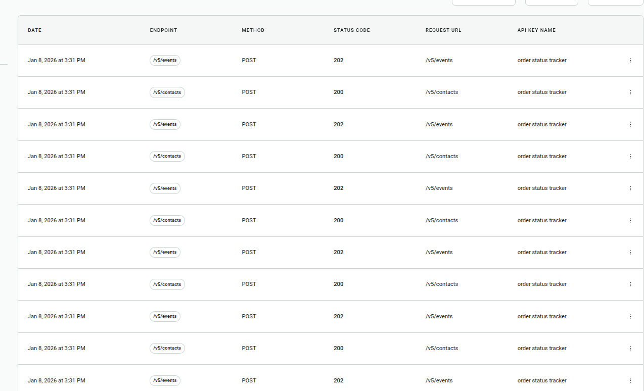 - You will see API event Logs, and you can check event details when you click on the three dots