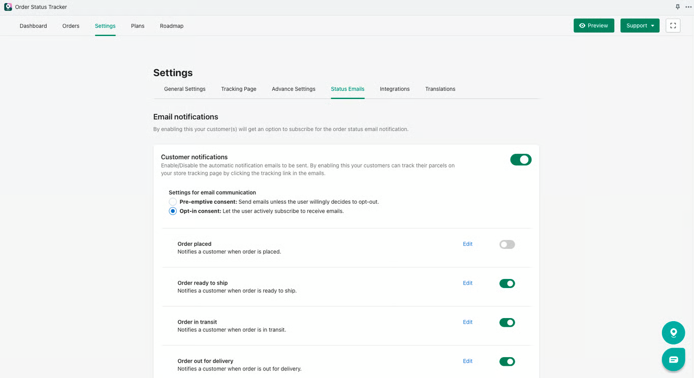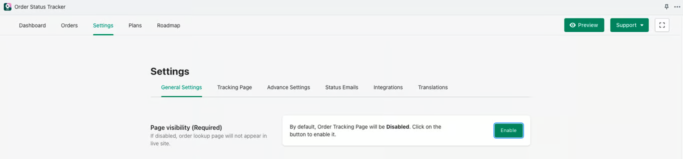 Click on the Enable button to enable the application and display the order tracking page in your store.