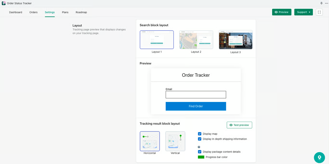 Click on the Tracking Page button to customize the Tracking Page layout.