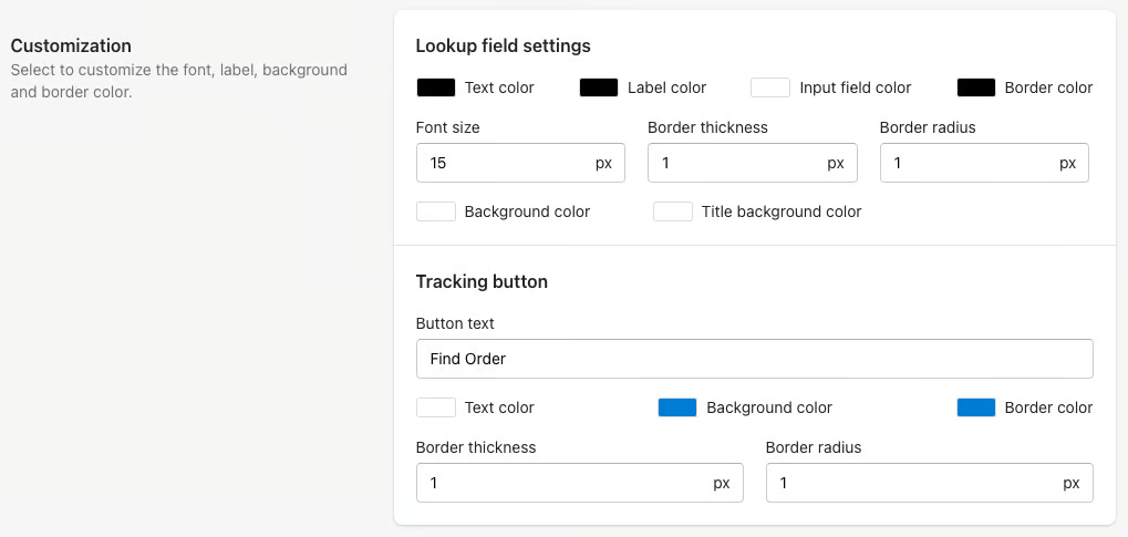 The next option available here is to customize the Button display on the Order Search/Tracking Page to initialize the tracking process.